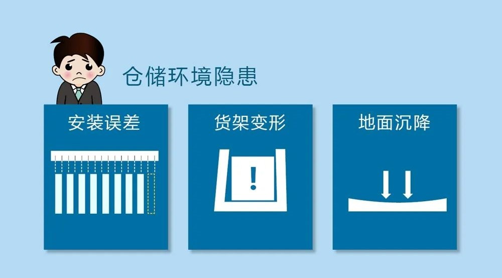 堆垛機存取物品時需要精確感知環(huán)境包括貨架欄位的狀態(tài)、貨物的精確位置等。長期運行時,各種細微誤差的累積,也會導致事故發(fā)生