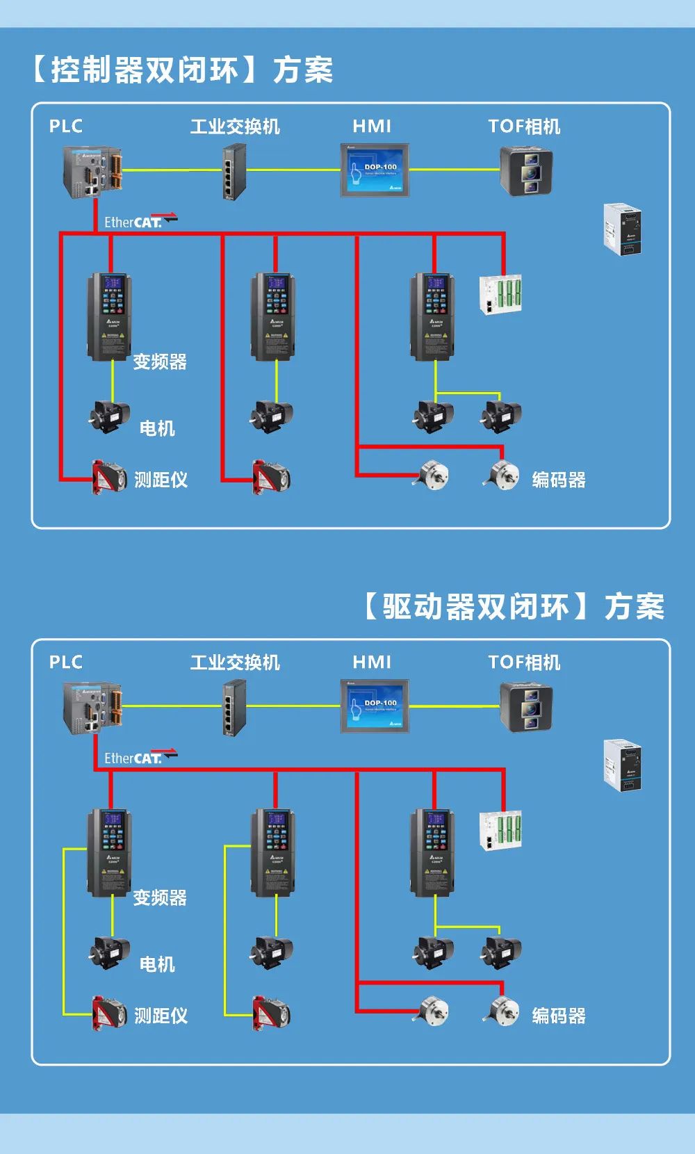 臺達堆垛機方案,建立在優(yōu)秀的自動化產(chǎn)品之上。臺達高性能 C2000+變頻器搭配 PLC、HMI、工業(yè)交換機、開關電源、測距儀以及全新的 3D TOF 智能相機。